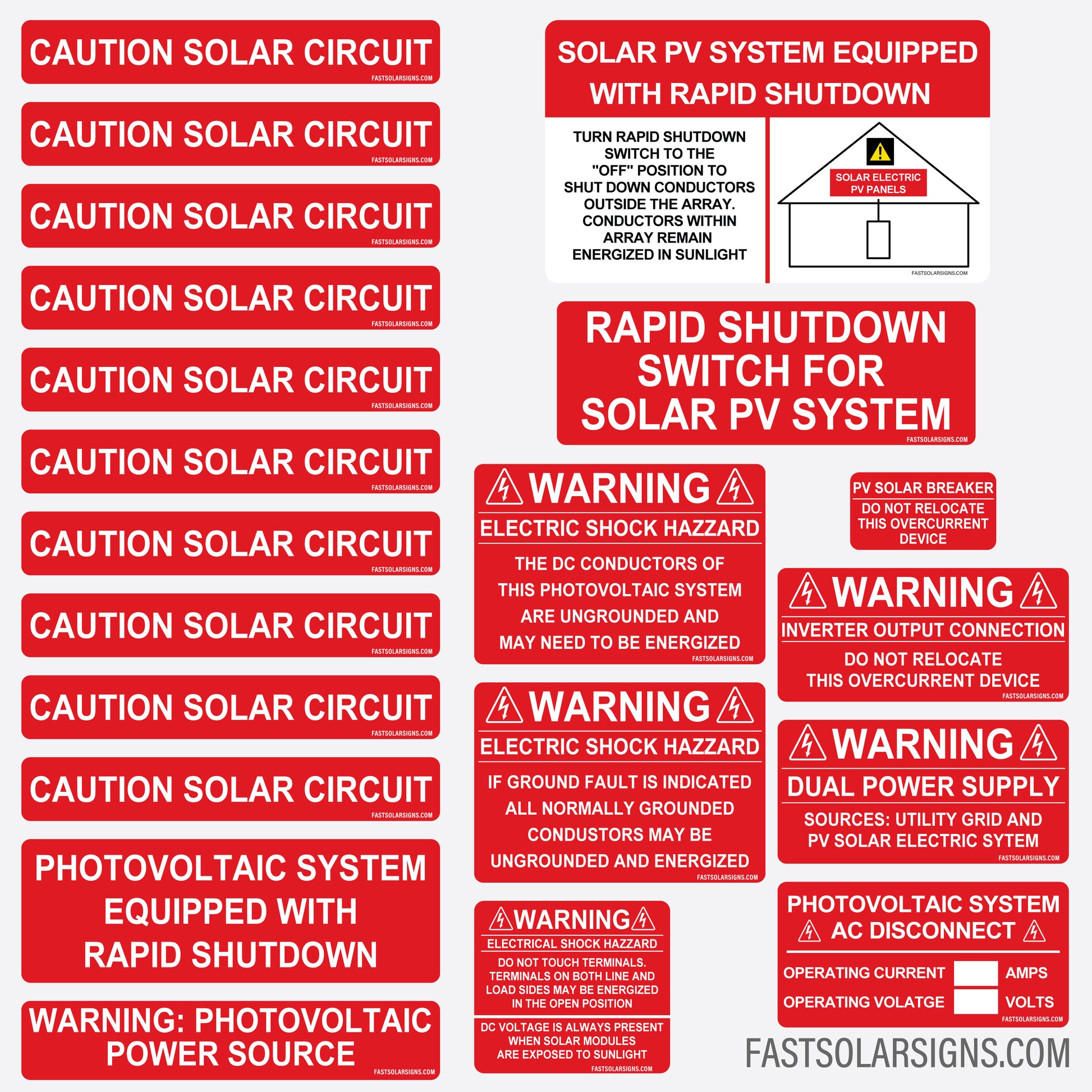 21 Piece Solar Label Pack | Solar Installer Warning Label Kit