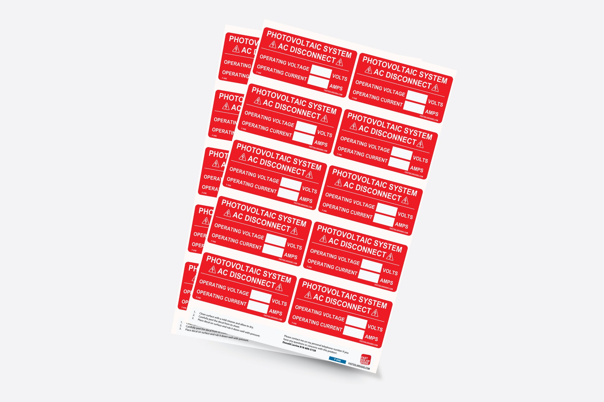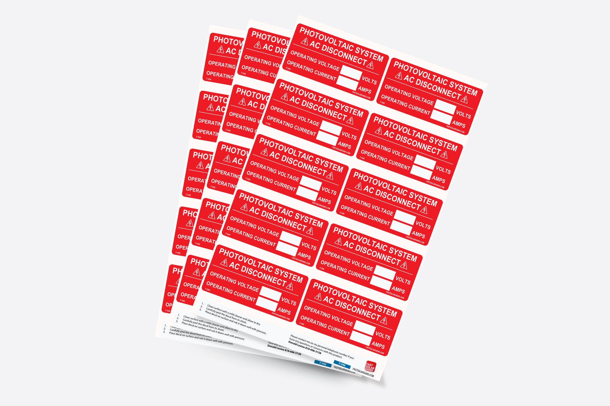 Fast Solar Signs offers essential labels such as pv disconnect switch, emergency disconnect sticker, and arc flash stickers, providing comprehensive tools for your solar system project.
