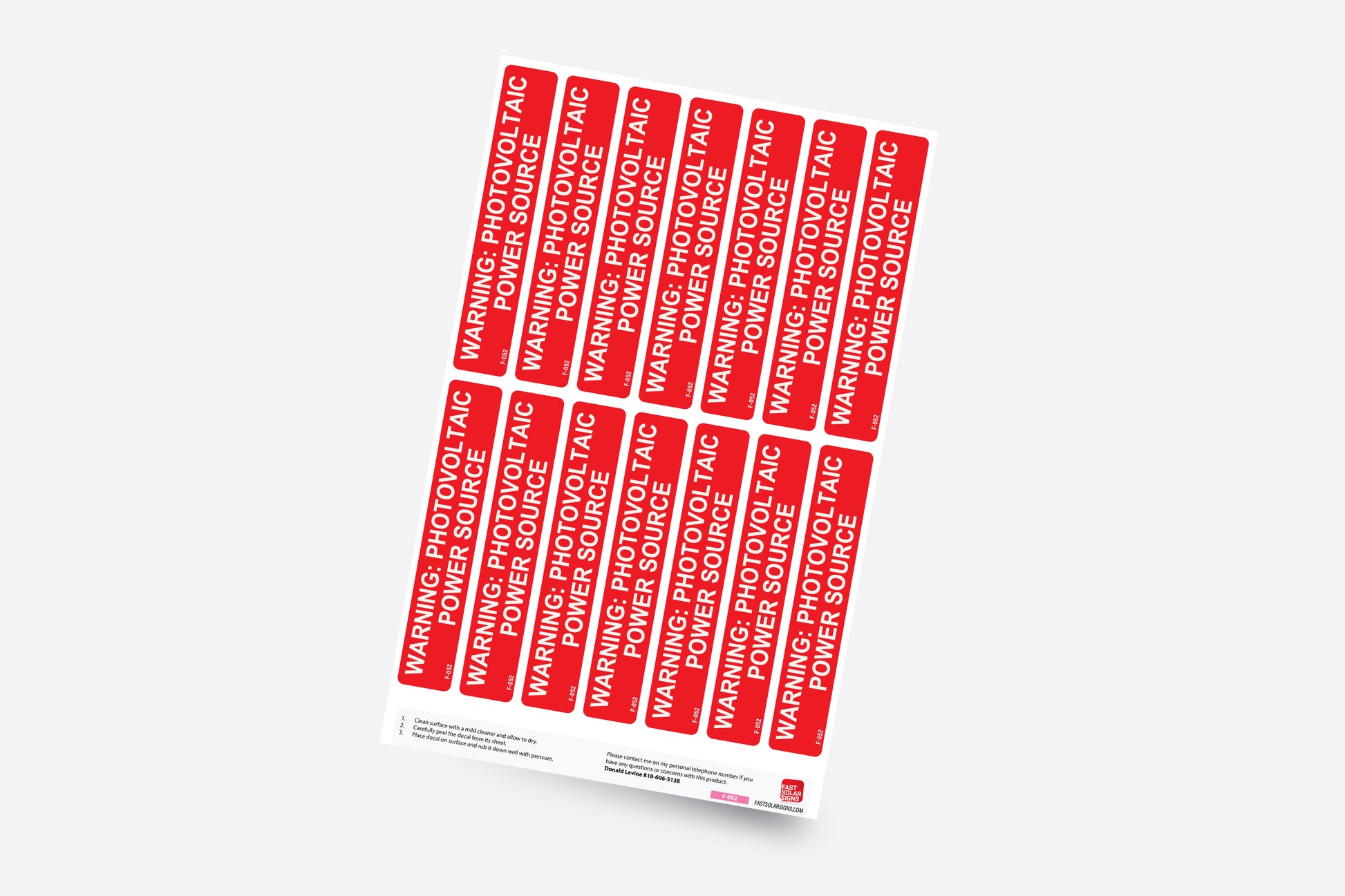 Fast Solar Signs offers essential labels such as pv disconnect switch, emergency disconnect sticker, and arc flash stickers, providing comprehensive tools for your solar system project.
