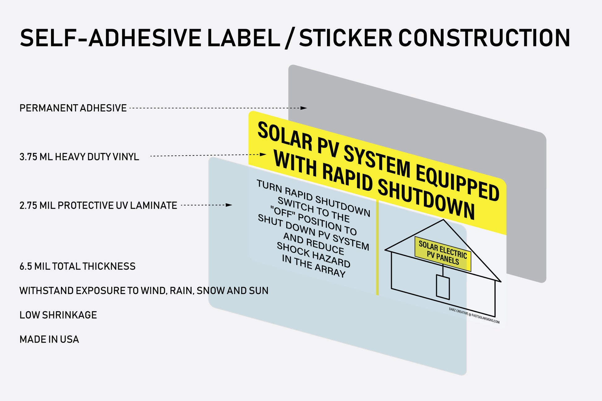 Fast Solar Signs offers essential labels such as pv disconnect switch, emergency disconnect sticker, and arc flash stickers, providing comprehensive tools for your solar system project.