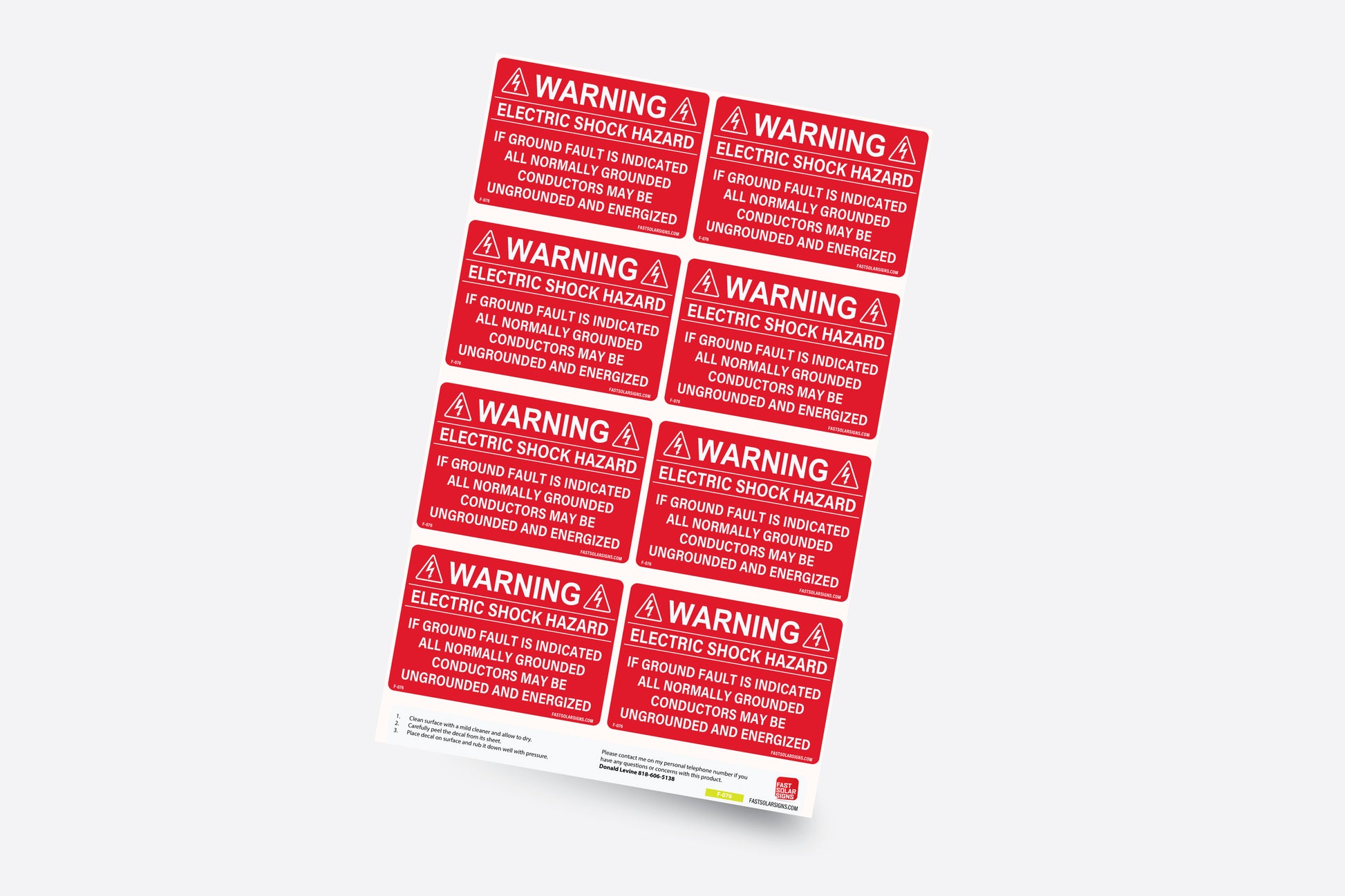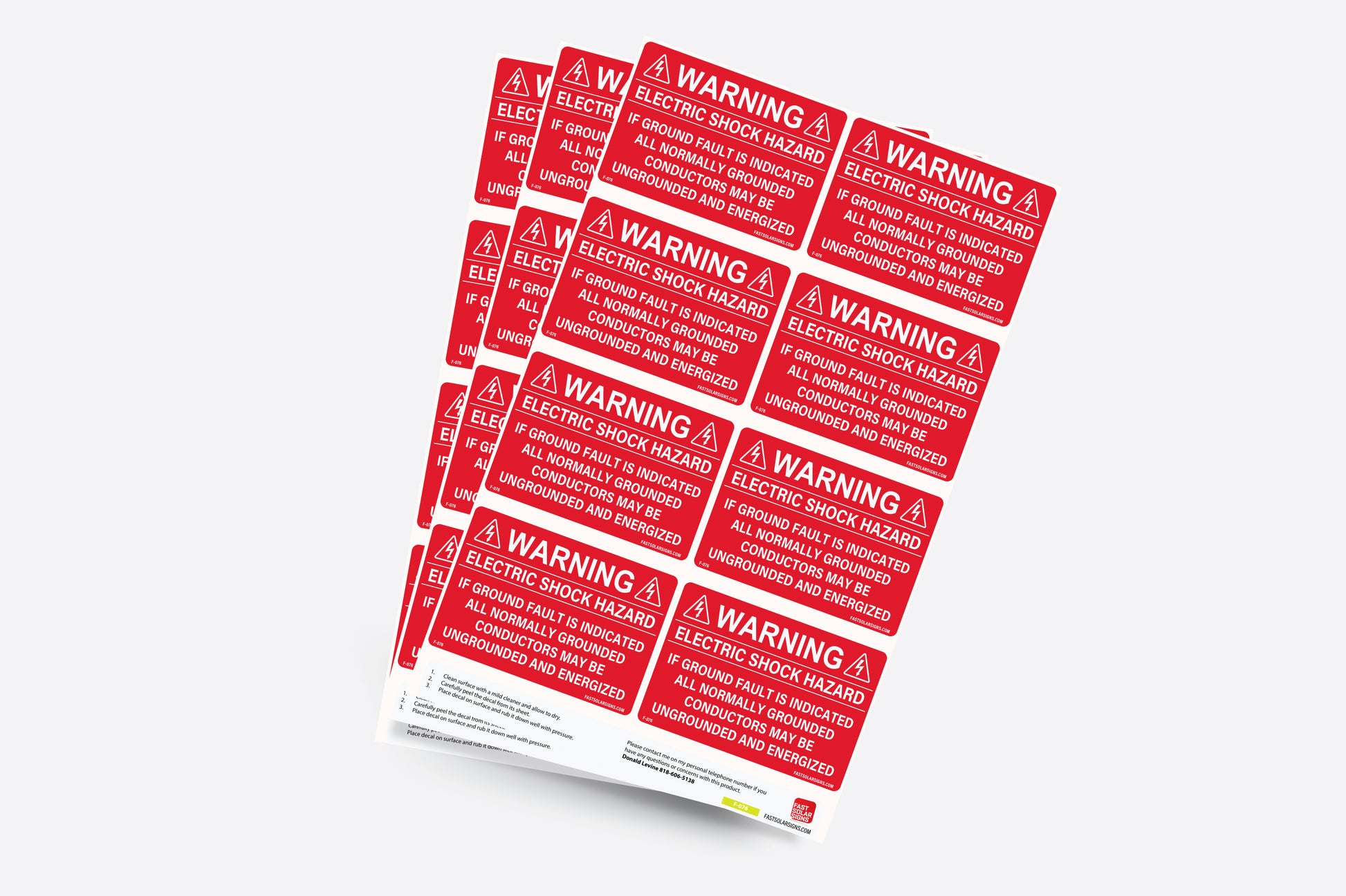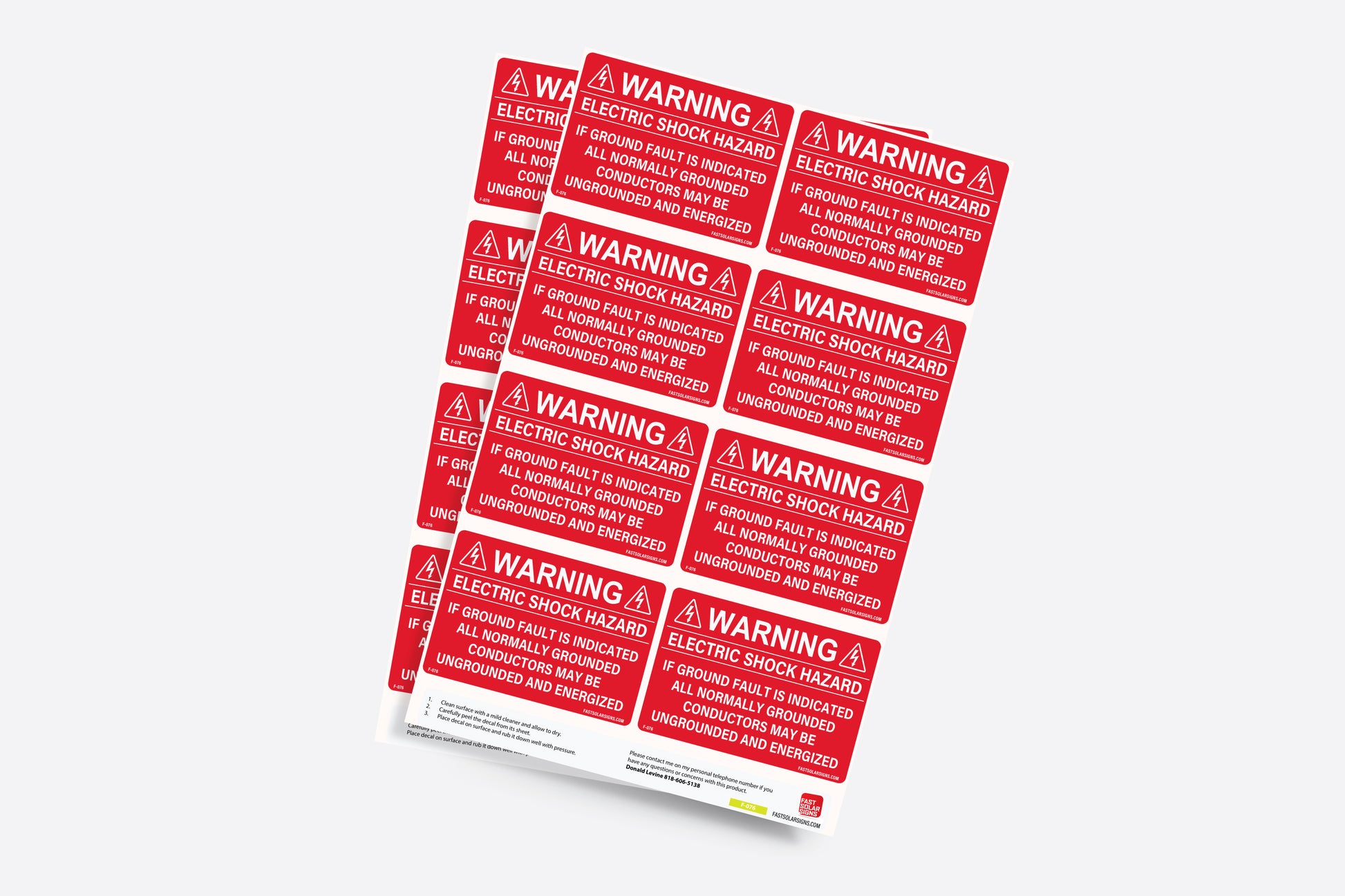F-076 Warning Electric Shock Hazard If Ground Fault