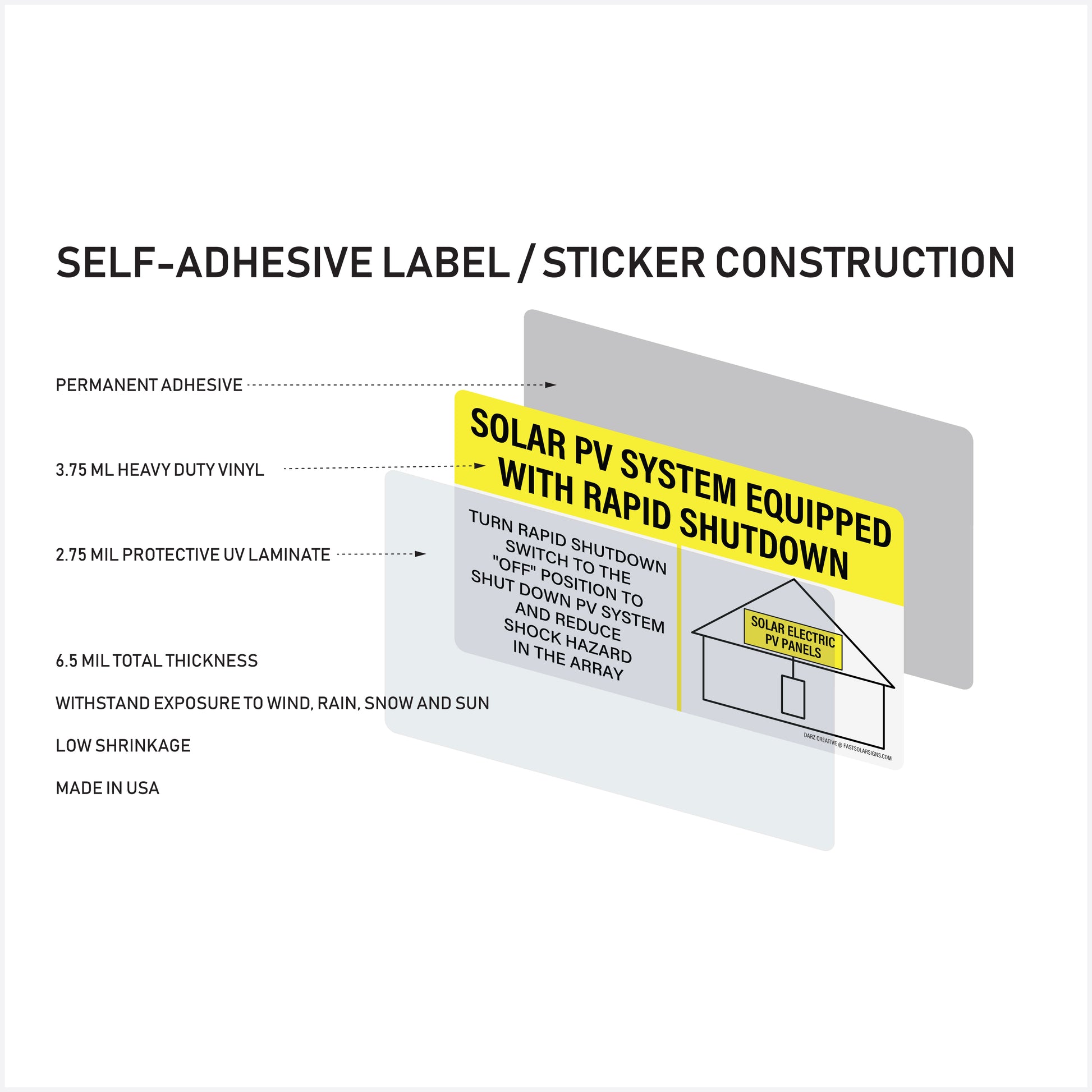 Fast Solar Signs offers essential labels such as pv disconnect switch, emergency disconnect sticker, and arc flash stickers, providing comprehensive tools for your solar system project.